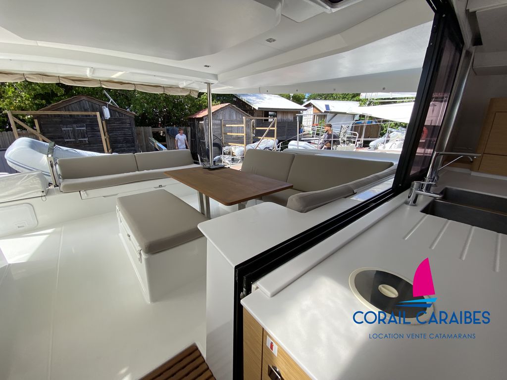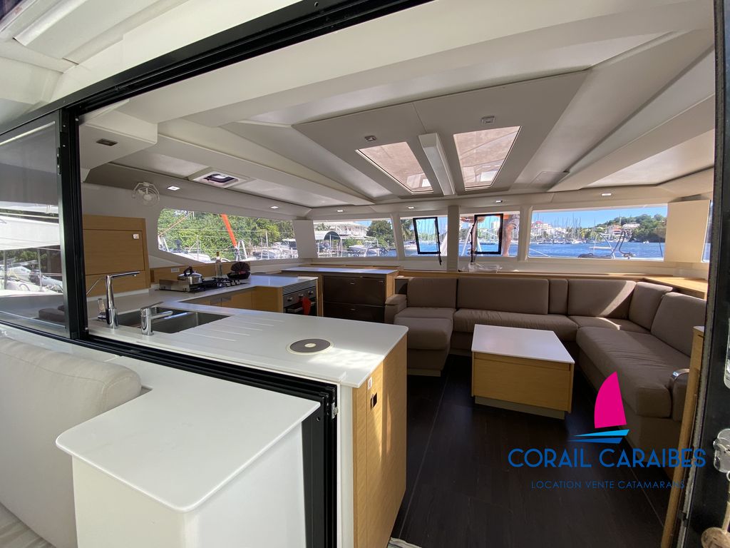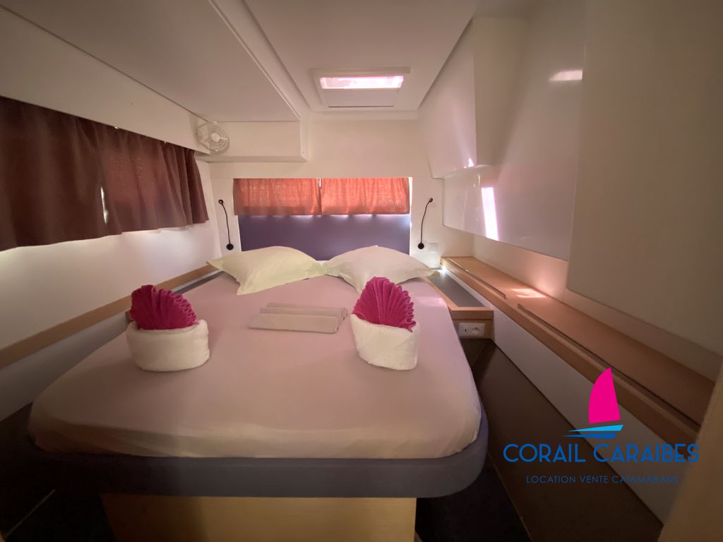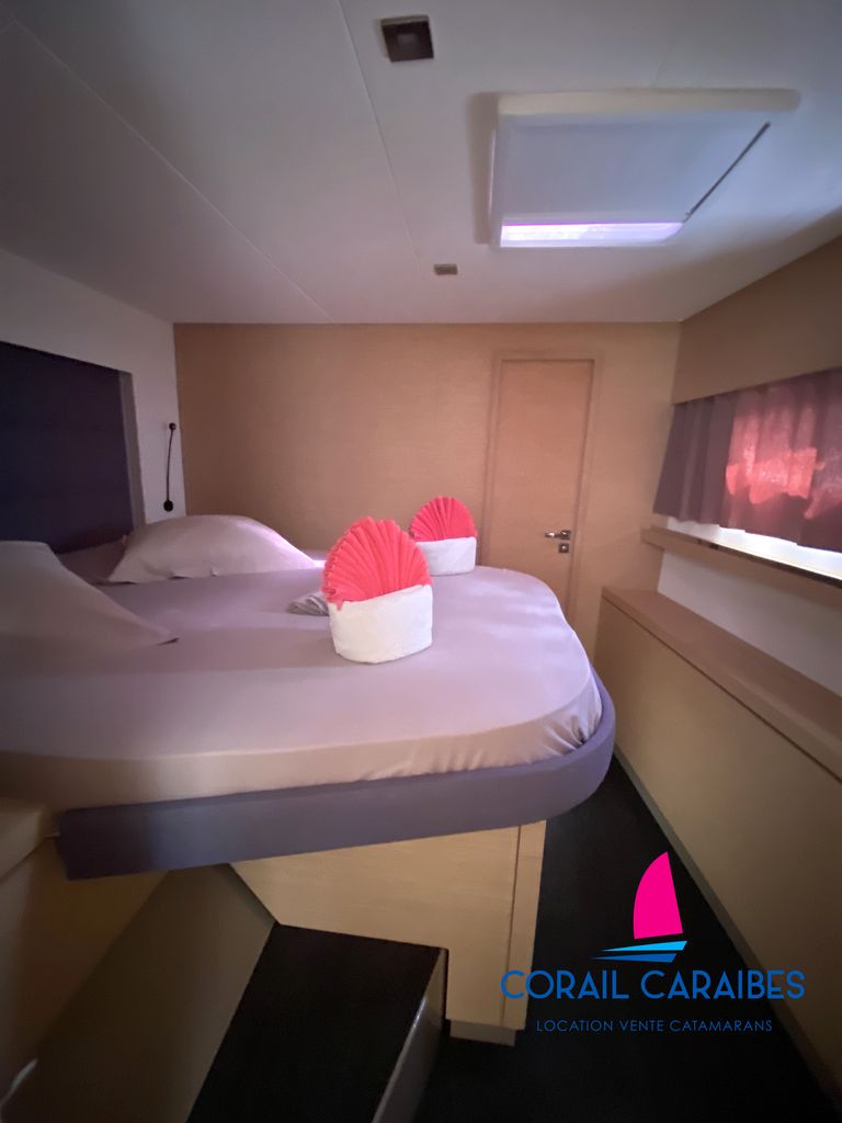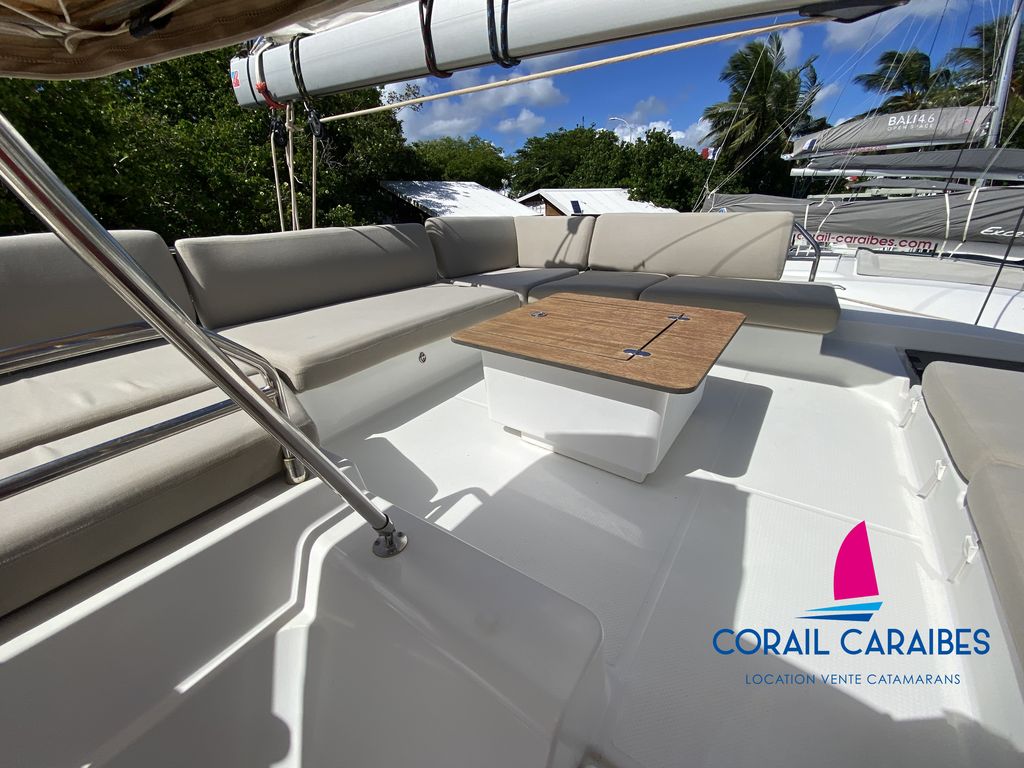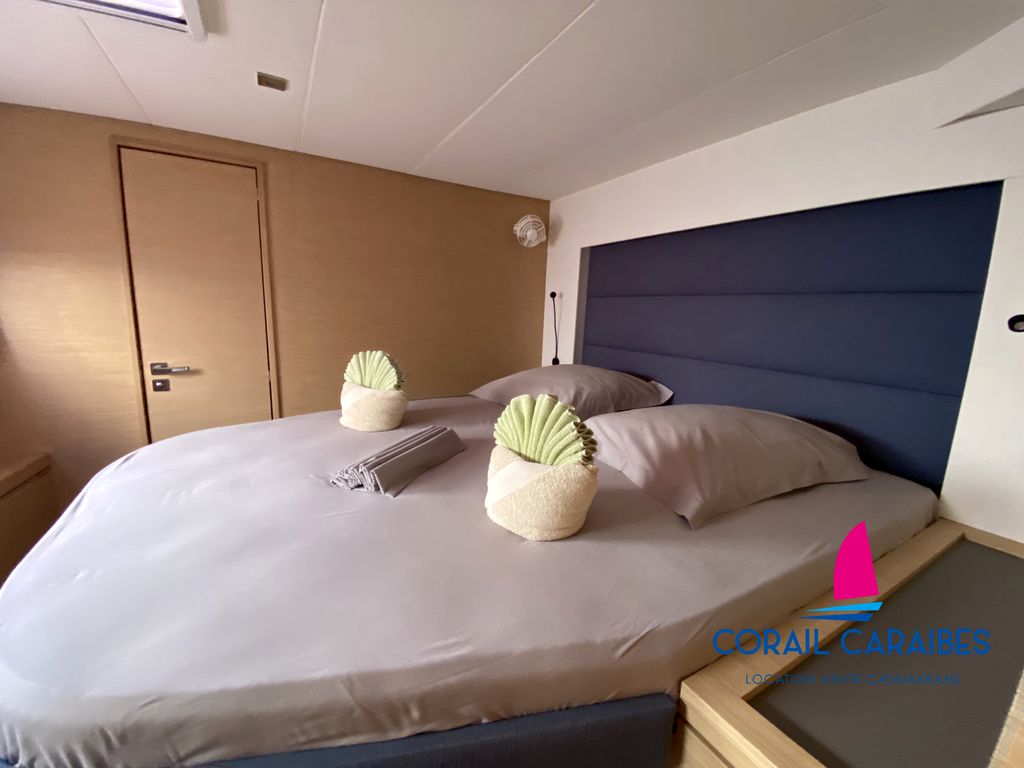 Le Tanna 47 est la nouvelle version du Saona 47 du chantier Fountaine-Pajot. Son équipement avec panneaux solaires puissants et dessalinisateur 12V permet une autonomie totale en eau et en électricité. La version charter permet d'accueillir 11 personnes à son bord avec 4 cabines doubles, 1 cabine avec lits superposés, 1 pointe avant aménagée en couchage simple et 5 cabinets de toilettes indépendants. Ce catamaran allie grande capacité d'accueil et confort.